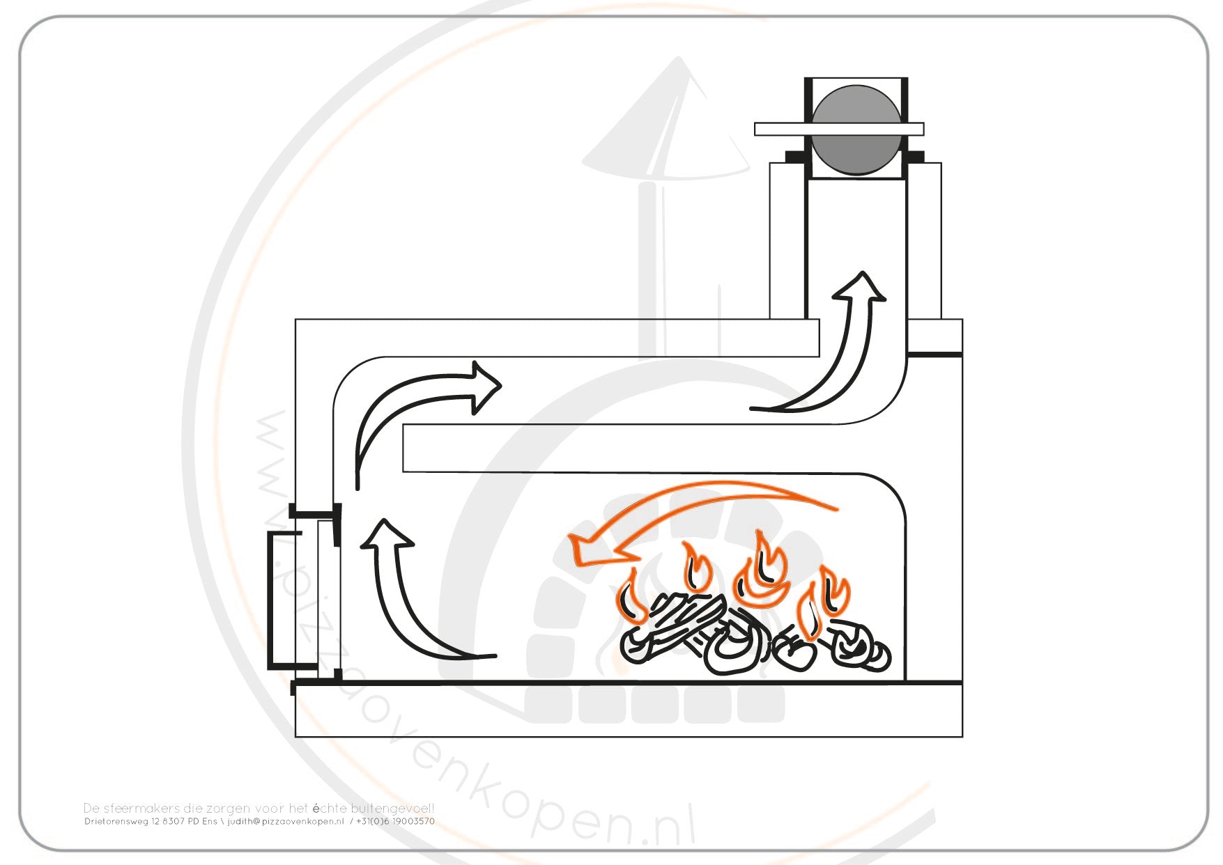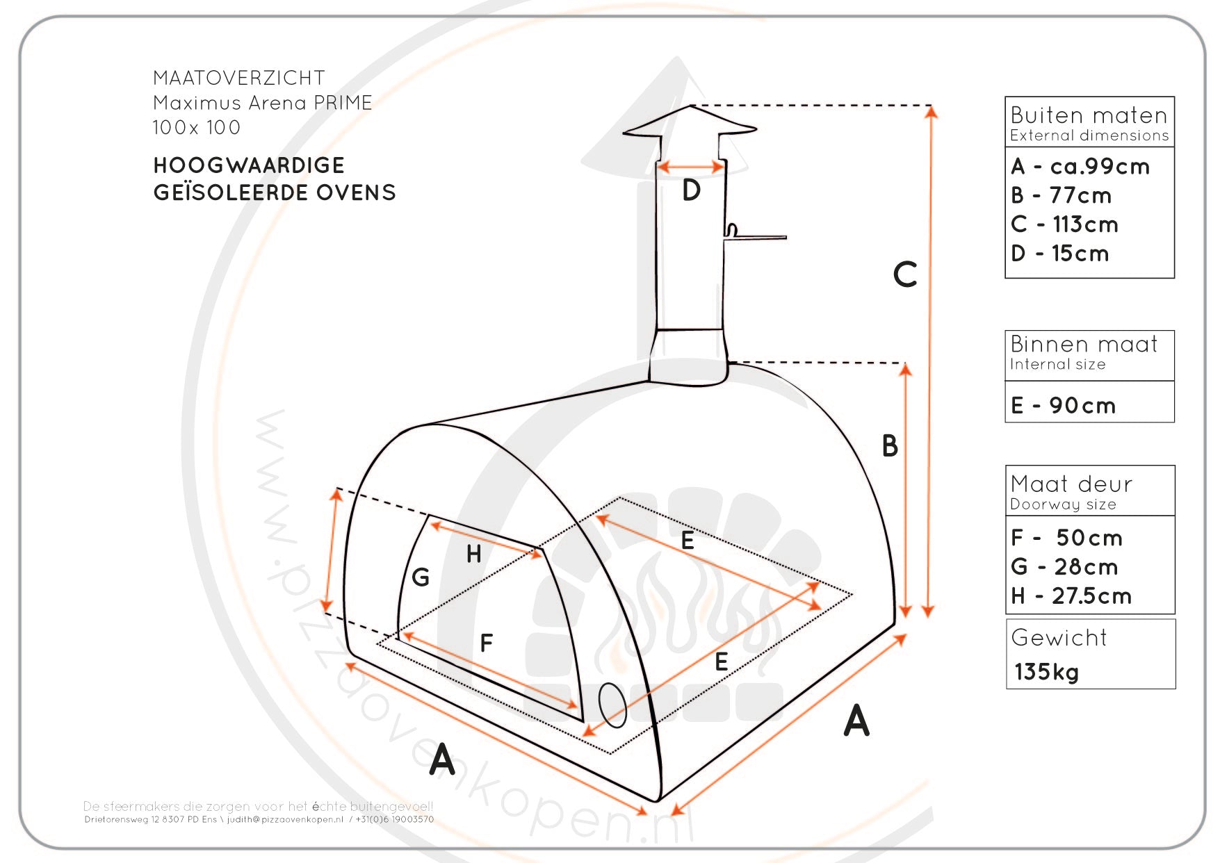 Oven is inclusief temp.meter, roomdivider, reserve steen, pizzaschep en ovenschaal